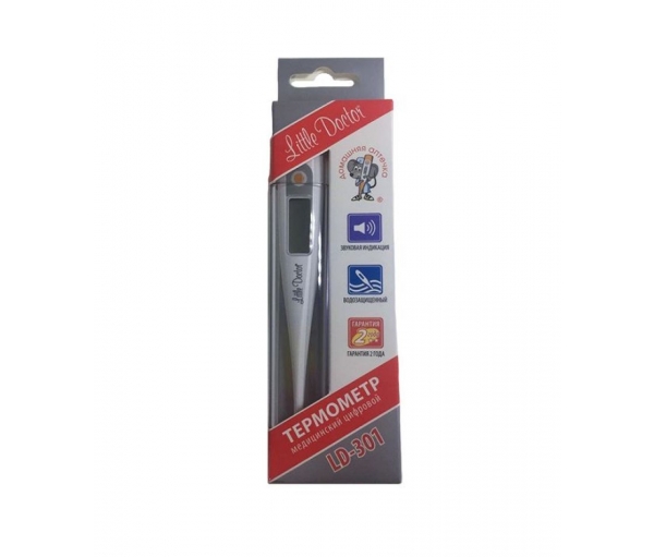 Электронный термометр LD-301 торговой марки Little Doctor представляет собой медицинский прибор нового поколения для измерения температуры тела пациента. В основе работы лежит принцип изменения электрического сопротивления проводника с последующей фиксацией результатов с помощью электроники. Корпус термометра защищен от попадания влаги. Индикация происходит с помощью жидкокристаллического дисплея и звукового сопровождения. Прибор сохраняет в памяти последний результат.
