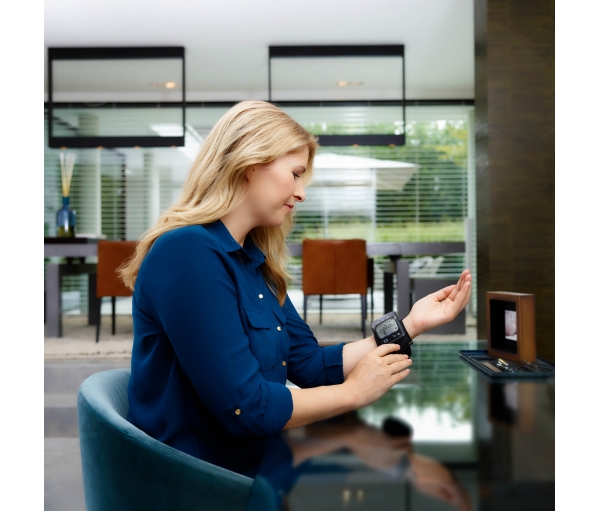 - Эргономичная манжета для обхвата запястья (13,5-21,5 см) обеспечивает естественное расположение прибора на руке, что способствует максимально точному результату.