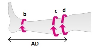 - d - длина окружности голени ниже подколенной складки на ширину двух пальцев