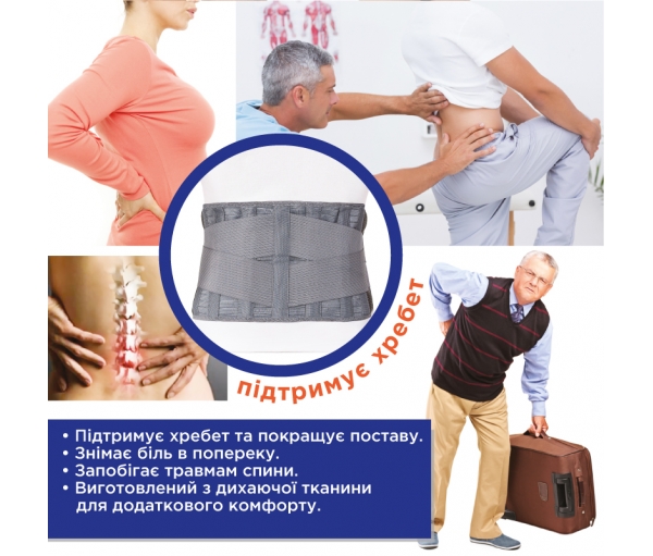 Бандаж поддерживающий 4 ребра жесткости от Toros-Group (Тип 212) предоставляет необходимую фиксацию пояснично-крестцового отдела позвоночника в период восстановления после различных травм, оперативных вмешательств на позвоночнике и органах брюшной полости, а также при опускании почек и смещении между позвонков. Фиксация дополнительными лямками поясницы обеспечивает требуемый уровень компрессии и фиксации, при этом уменьшаются болезненные ощущения в нижнем отделе позвоночника. Система застежек позволяет дозировать и распределять необходимую фиксацию и разгружать поясничный отдел