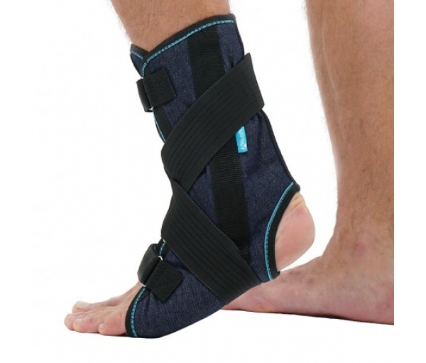 - Обеспечивает полную степень фиксации сустава, в отдельных случаях (трещины в костях, легкие переломы без смещения) может заменять гипсовую повязку. Жестко удерживает конечность в физиологически выгодном положении, исключает подвижность, благодаря чему уменьшается боль в поврежденном суставе. Ортез прочно охватывает лодыжку и стопу и предотвращает отекание этого участка.