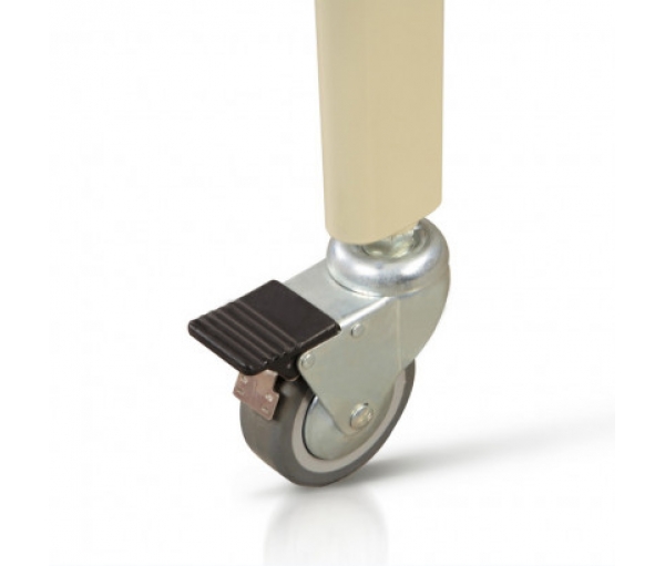 - Важным дополнением этой модели являются прорезиненные колеса с тормозными фиксаторами. Такая особенность является оправданной, если в процессе эксплуатации есть необходимость для транспортировки пациента или уборки под кроватью.