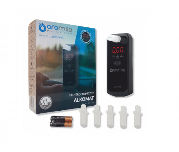 Алкотестер Oromed X11 PRO — это профессиональный прибор для определения содержания алкоголя в выдыхаемом воздухе. Он оснащен высококлассным электрохимическим датчиком, который гарантирует высокую точность измерений во всем диапазоне измерений. Оснащен датчиком расхода воздуха, системой, которая защищает измерительную ячейку от повреждений в случае неправильно выполненного теста.