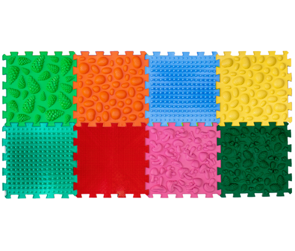 Массажный коврик "Пазлы Микс" 09224 Ortek состоит из 8 пазлов, производится из гигиеничного, гипоаллергенного материала на основе ПВХ.