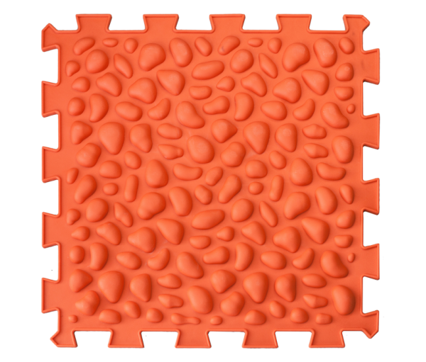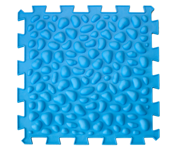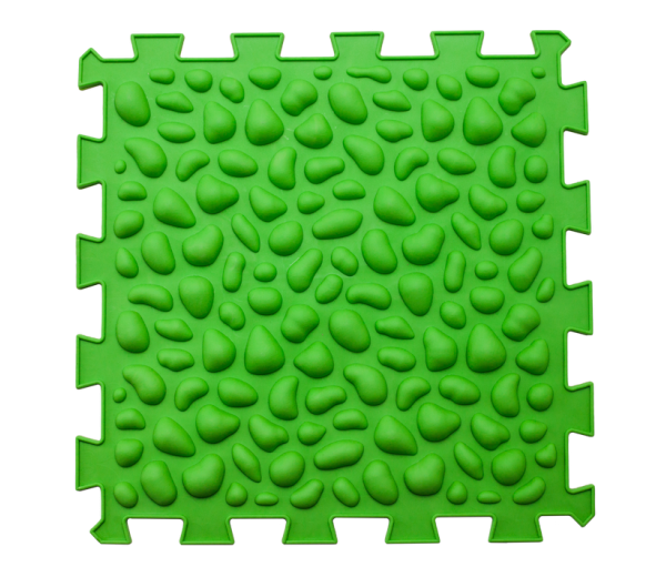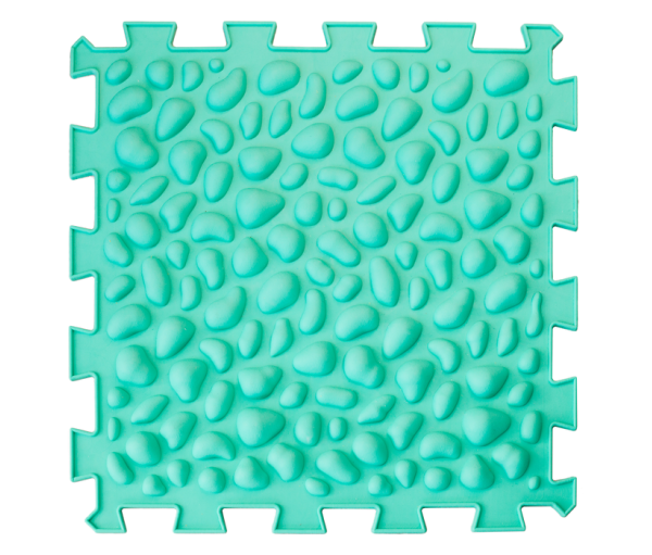 Коврик массажный Пазлы "Галька". Коврик состоит из 1 модуля. Сделан из экологически чистого, гипоаллергенного материала, эффективно амортизирующего ударную нагрузку. Массажные элементы разной формы оптимальны для тренировки мышц стопы.